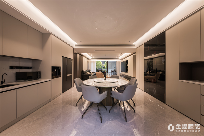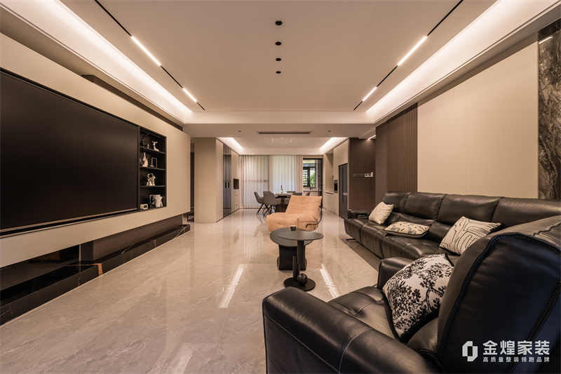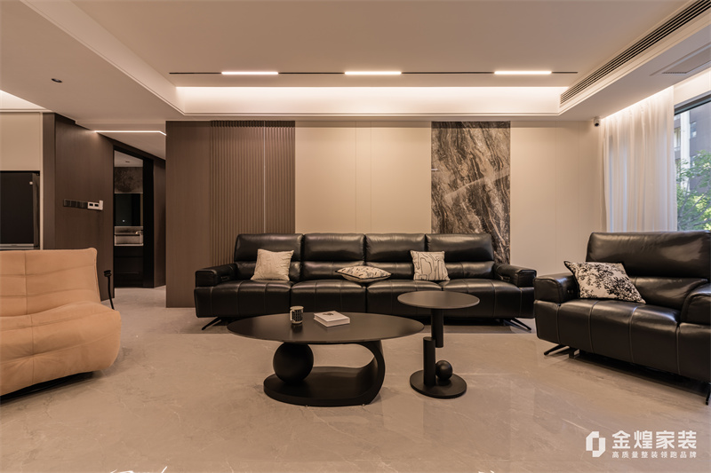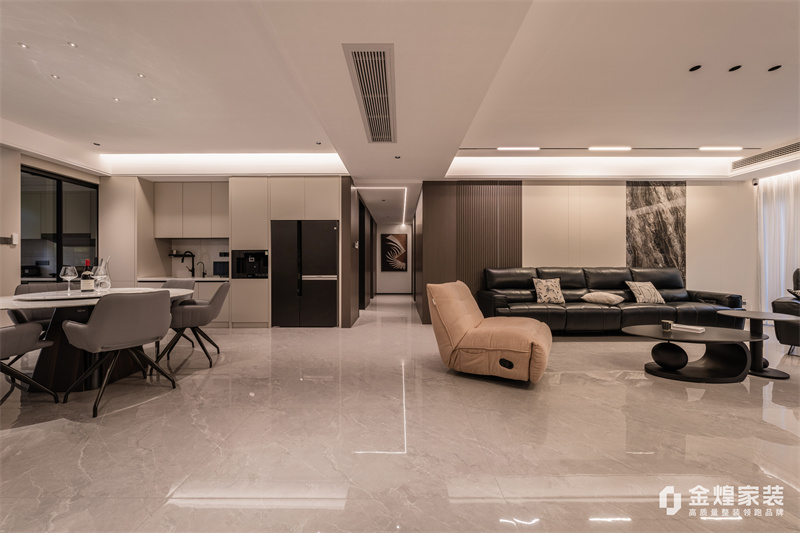 本案整體以意式輕奢為主基調(diào),去客廳化,結(jié)合輕奢主義打造意式簡約空間,整體運用了木飾面、硬包以及巖板等不同材質(zhì)的碰撞,空間沉穩(wěn)大氣,質(zhì)感十足。