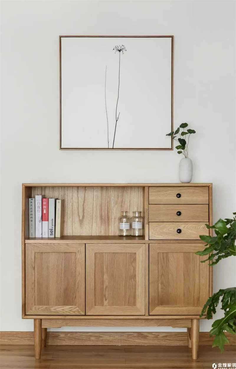 原木風格的客廳以舒適的布局為基調,使用大面積原木色與白色結合。奶白色的墻面搭配色彩樸素的軟裝飾品,再加上綠植和一盞落地燈,暖暖的燈光裝飾,營造出一個溫馨的氛圍。