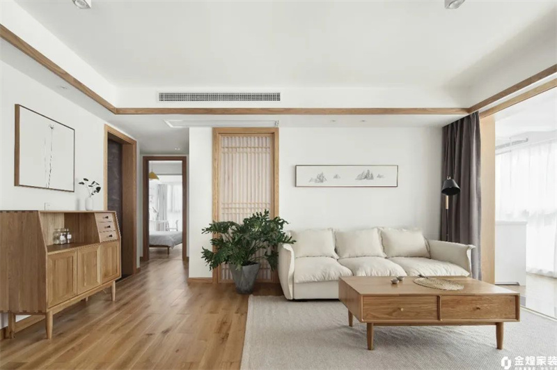 本案以天然木質為主要材料,設計簡約卻富有層次感,通過巧妙的光影運用和清新素雅的軟裝搭配,打造出一個既溫馨又充滿現代感的居住空間。