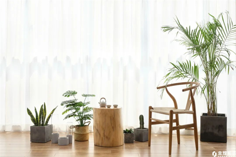 陽臺鋪設著淺色原木地板,陽光透過玻璃窗灑滿整個空間,再點綴幾盆綠植,生機勃勃的綠意與原木色調相互映襯,為空間注入了自然的活力。
