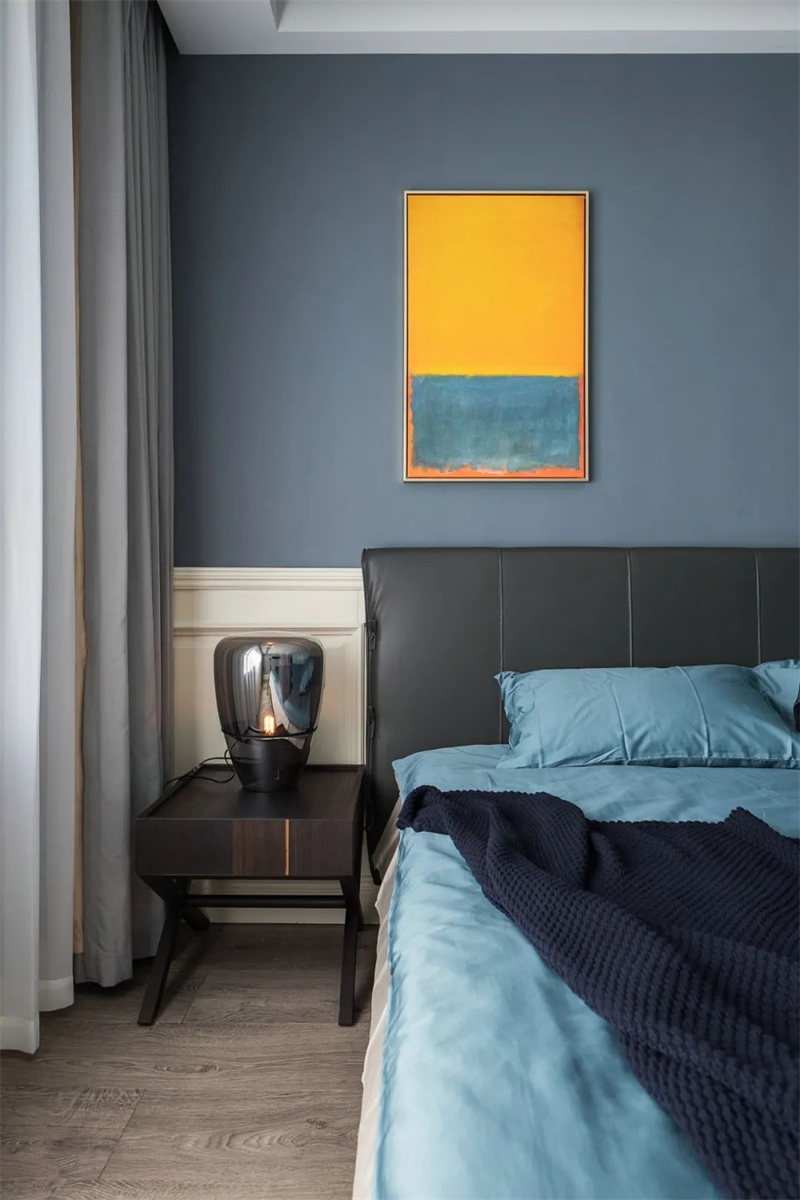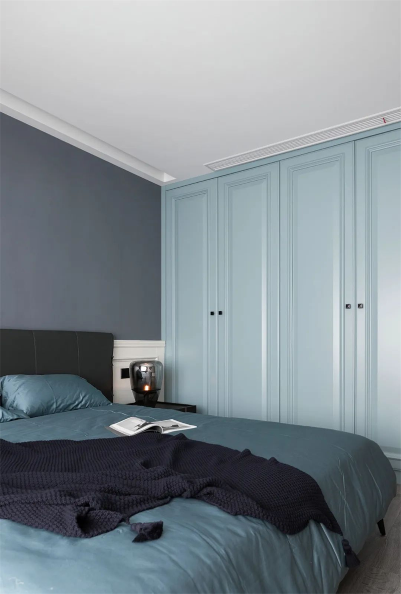 主臥采用了極簡的設計語言,白色和淺灰色墻面搭配木色地板,突顯整體空間的清新與寬敞感。床品選擇了高質感的純棉,搭配一些柔和的裝飾枕,營造出溫馨的氛圍。簡約的床頭柜和燈具設計,為主人帶來舒適輕松的睡眠空間。